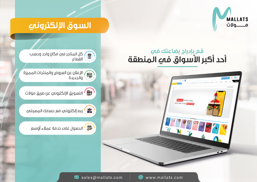 سوق مولات الإلكتروني عبارة عن مجموعة من المتاجر الإلكترونية المتميزة الموجودة في موقع واحد والذي يهدف إلى عرض منتجات وخدمات التجار والتي تمكّن العملاء من التسوق تحت منصة واحدة.مميزات سوق مولات الإلكتروني: